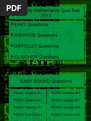 Math Quiz Bee Questions And Answers For High School Quiz - Description this will give you a very quick revision of some important areas which are essentially required as previous kowledge before entering grade 12).